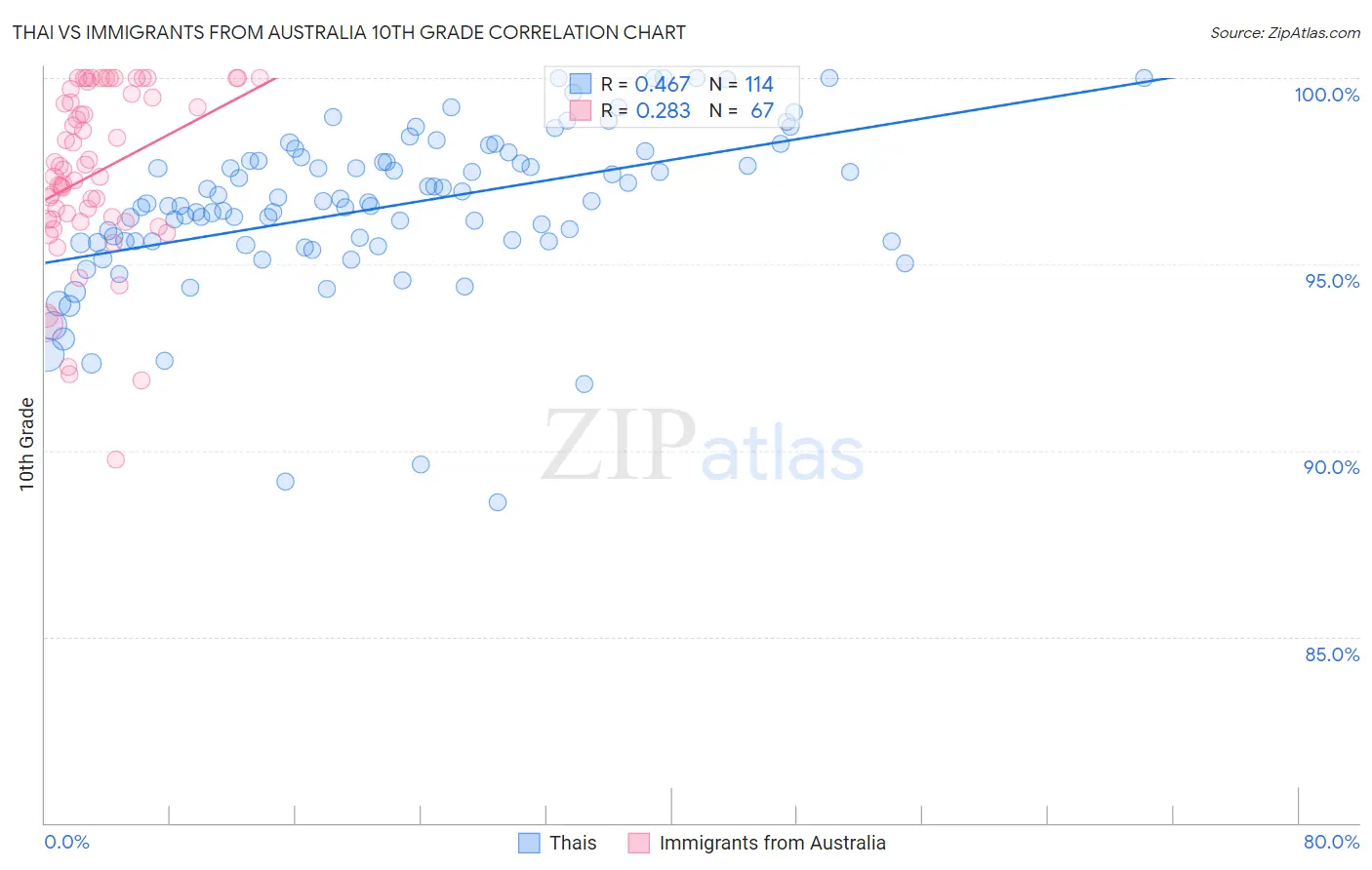 Thai vs Immigrants from Australia 10th Grade Correlation Chart