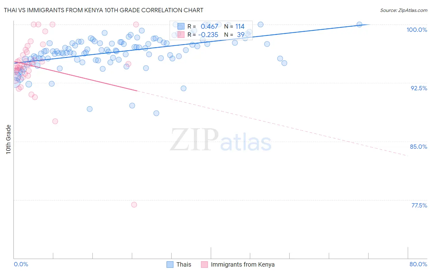 Thai vs Immigrants from Kenya 10th Grade Correlation Chart