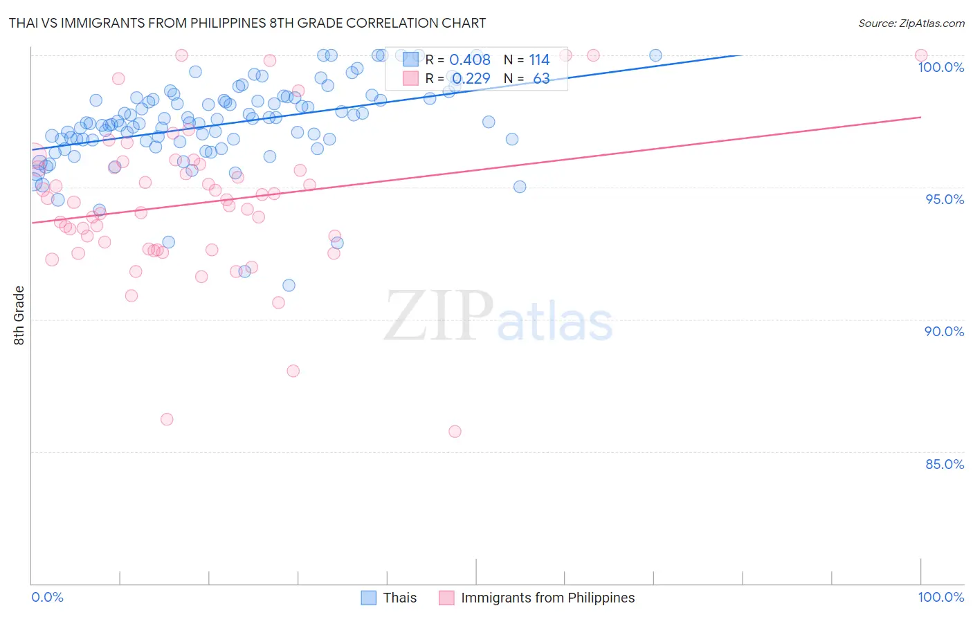 Thai vs Immigrants from Philippines 8th Grade Correlation Chart
