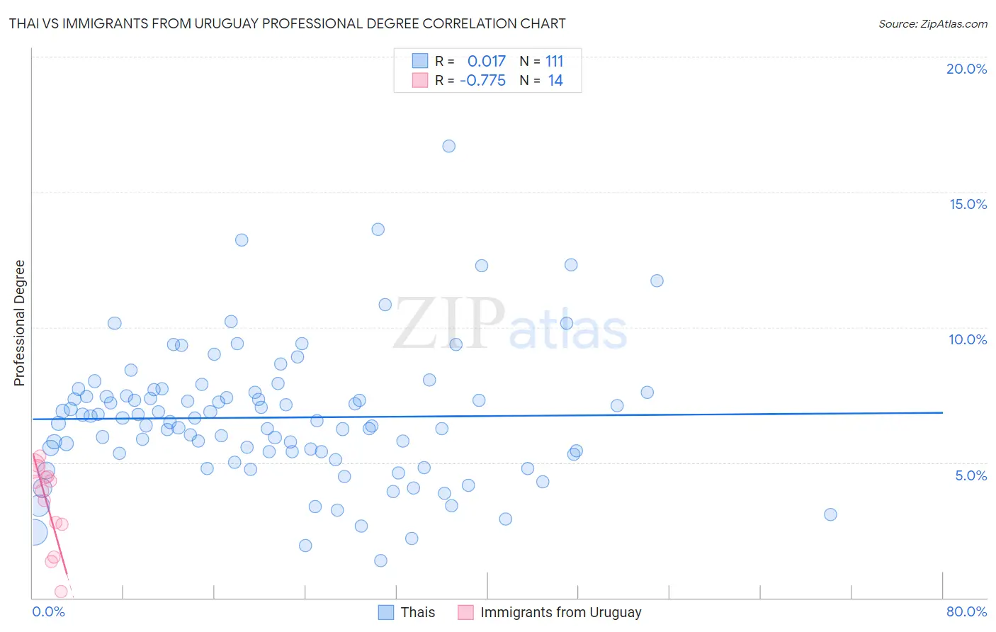 Thai vs Immigrants from Uruguay Professional Degree Correlation Chart