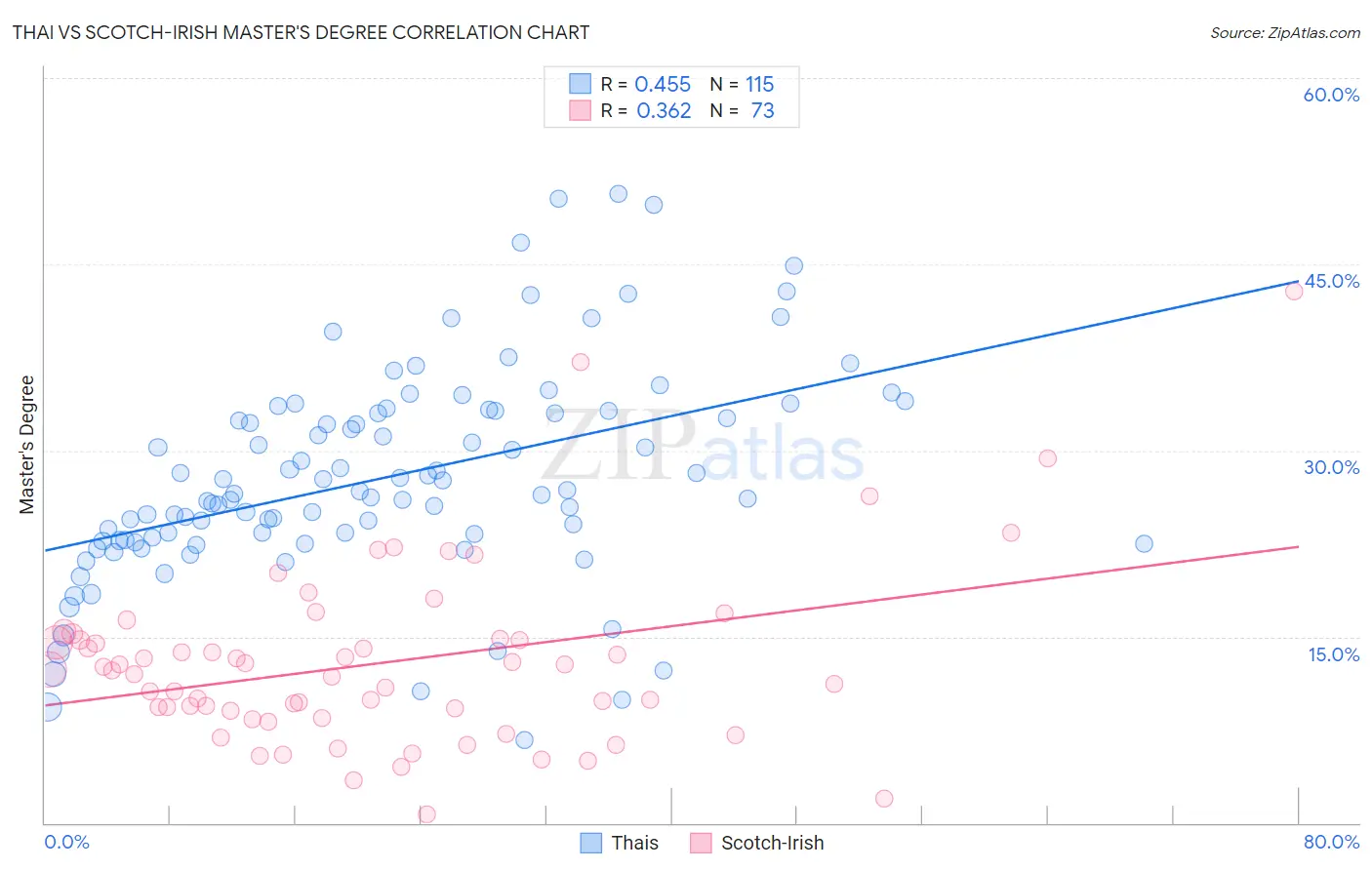 Thai vs Scotch-Irish Master's Degree Correlation Chart