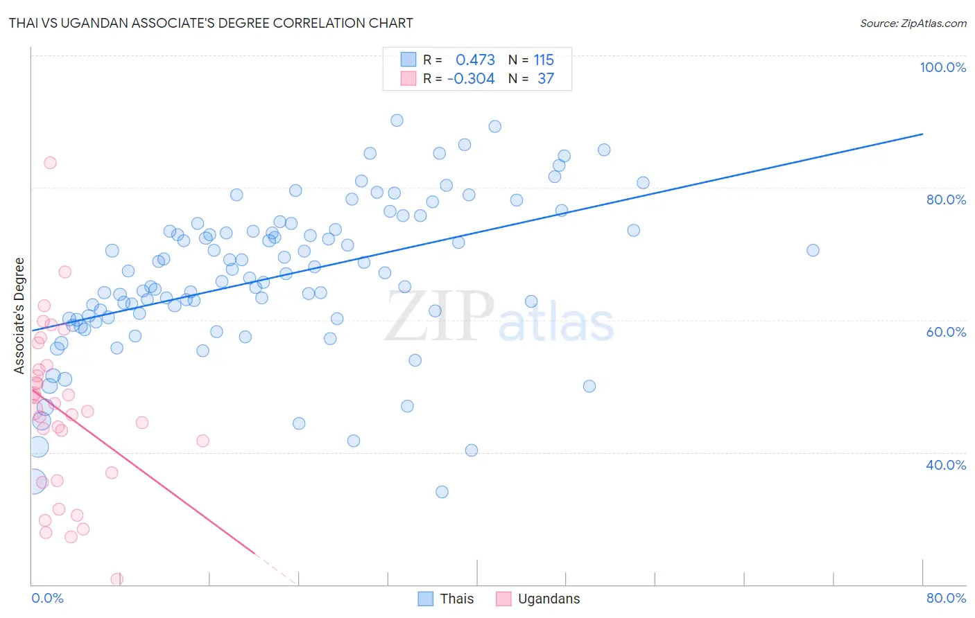 Thai vs Ugandan Associate's Degree Correlation Chart