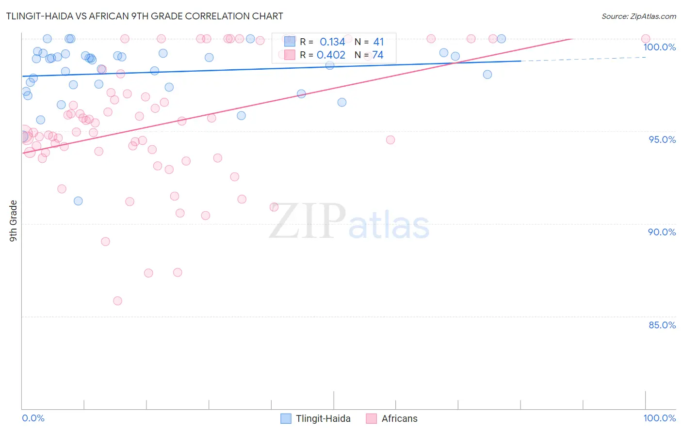 Tlingit-Haida vs African 9th Grade Correlation Chart