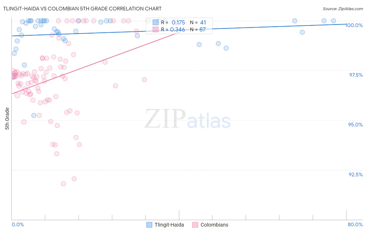 Tlingit-Haida vs Colombian 5th Grade Correlation Chart