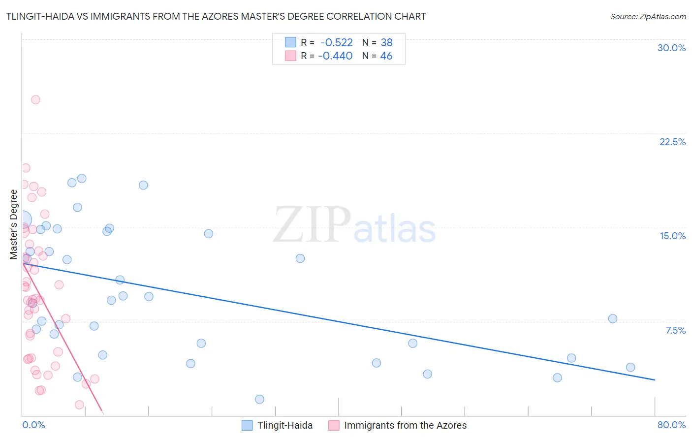 Tlingit-Haida vs Immigrants from the Azores Master's Degree Correlation Chart