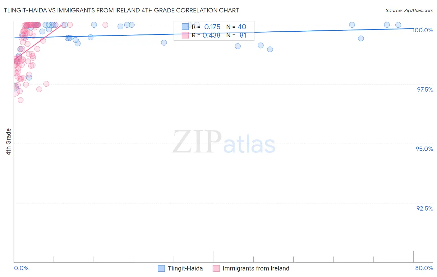Tlingit-Haida vs Immigrants from Ireland 4th Grade Correlation Chart