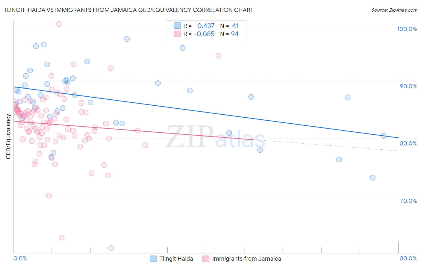 Tlingit-Haida vs Immigrants from Jamaica GED/Equivalency Correlation Chart