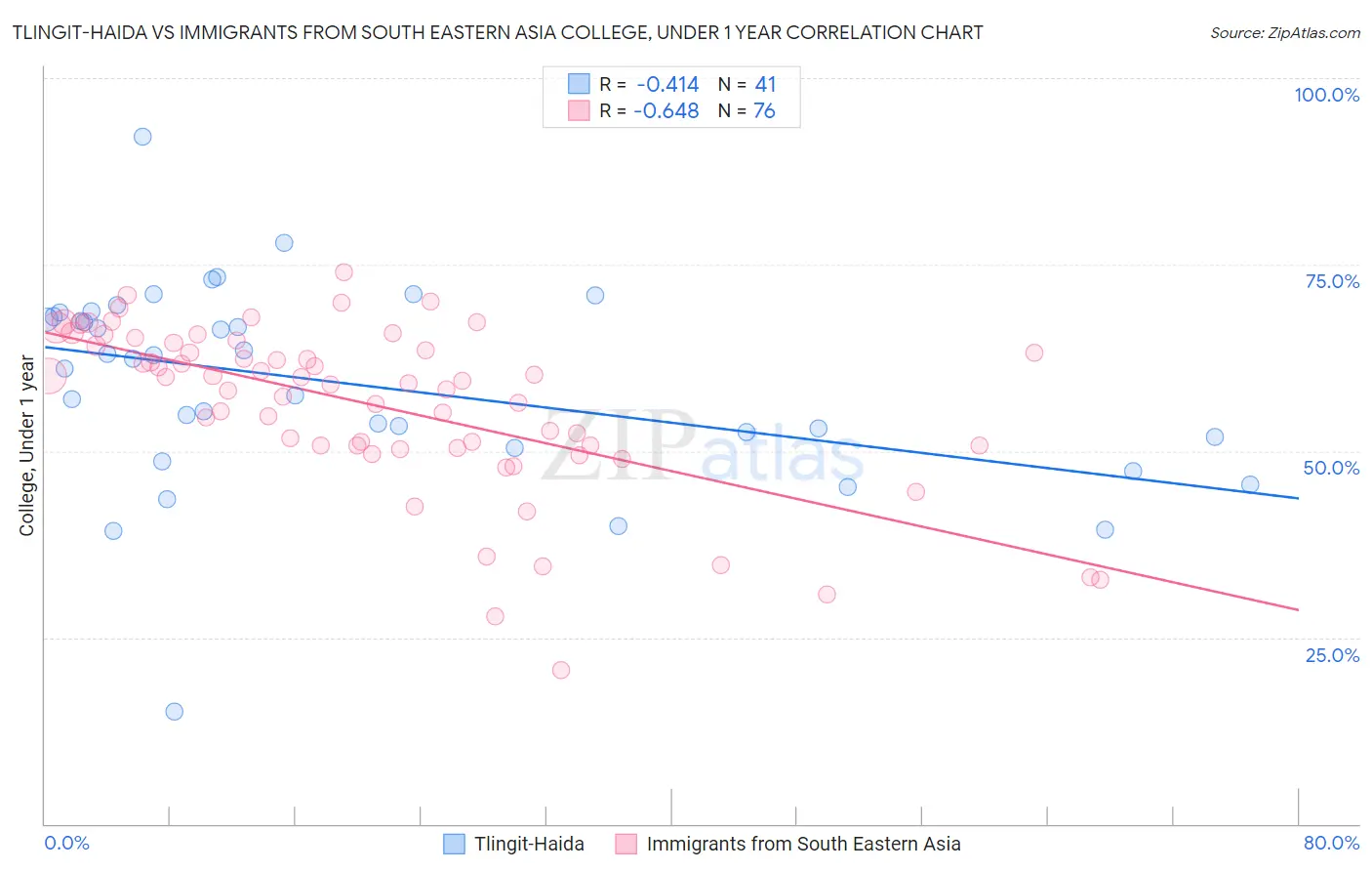 Tlingit-Haida vs Immigrants from South Eastern Asia College, Under 1 year Correlation Chart
