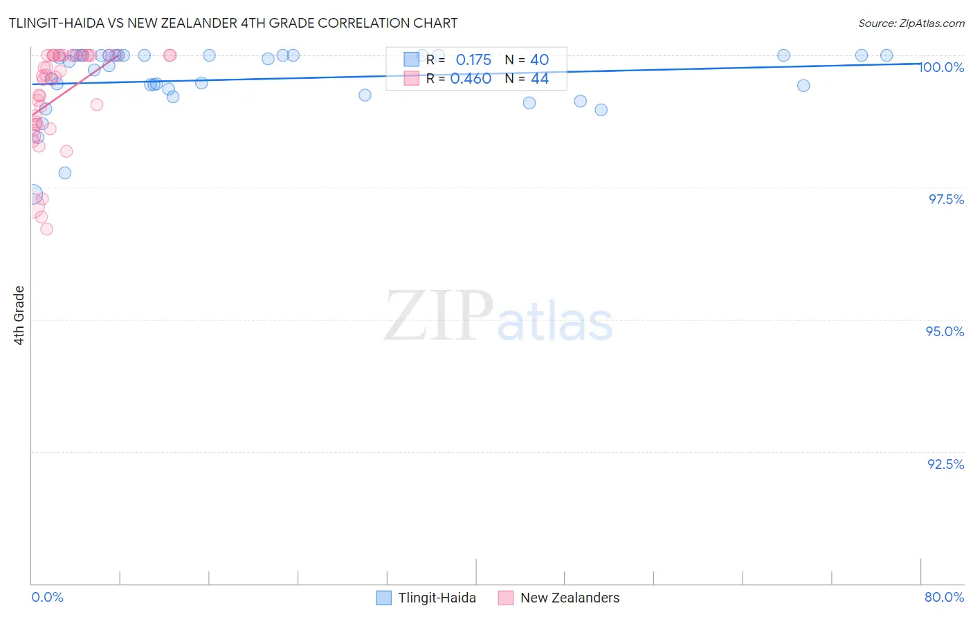 Tlingit-Haida vs New Zealander 4th Grade Correlation Chart
