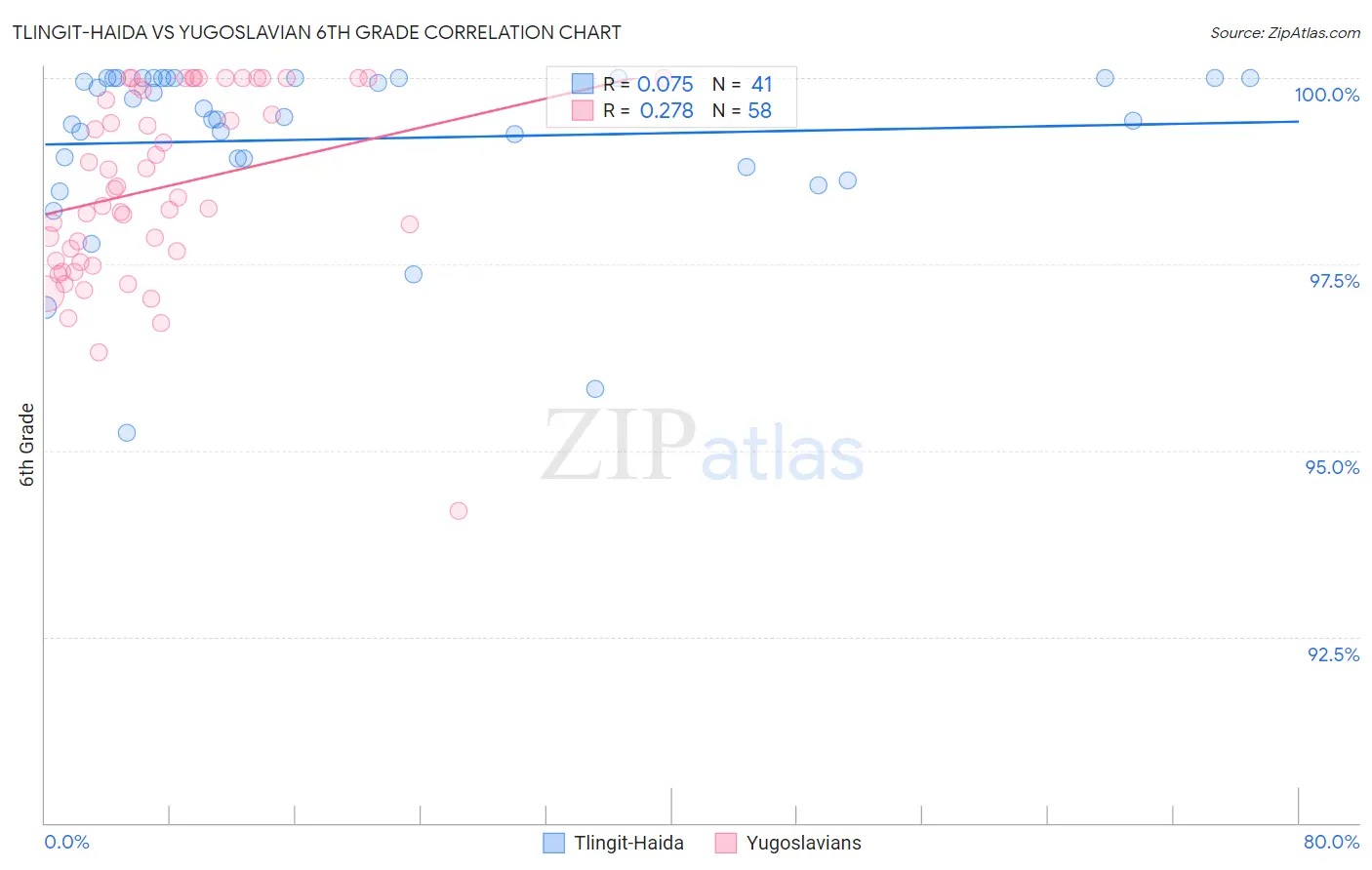 Tlingit-Haida vs Yugoslavian 6th Grade Correlation Chart