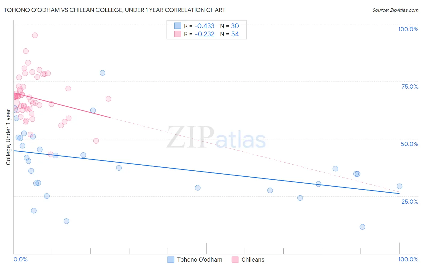 Tohono O'odham vs Chilean College, Under 1 year Correlation Chart