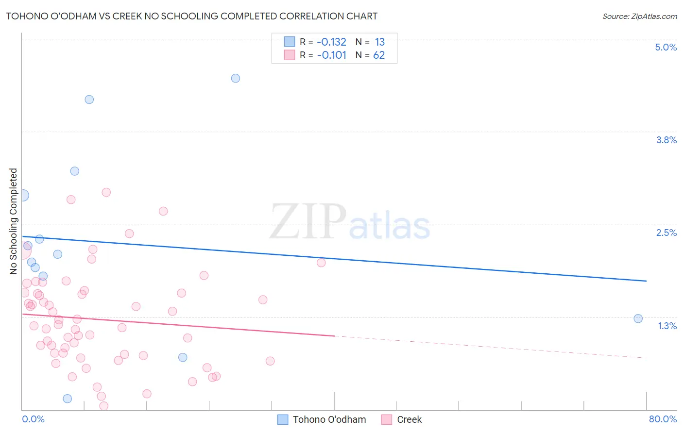 Tohono O'odham vs Creek No Schooling Completed Correlation Chart