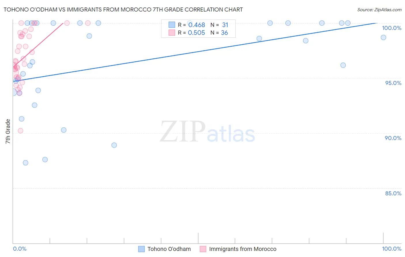 Tohono O'odham vs Immigrants from Morocco 7th Grade Correlation Chart