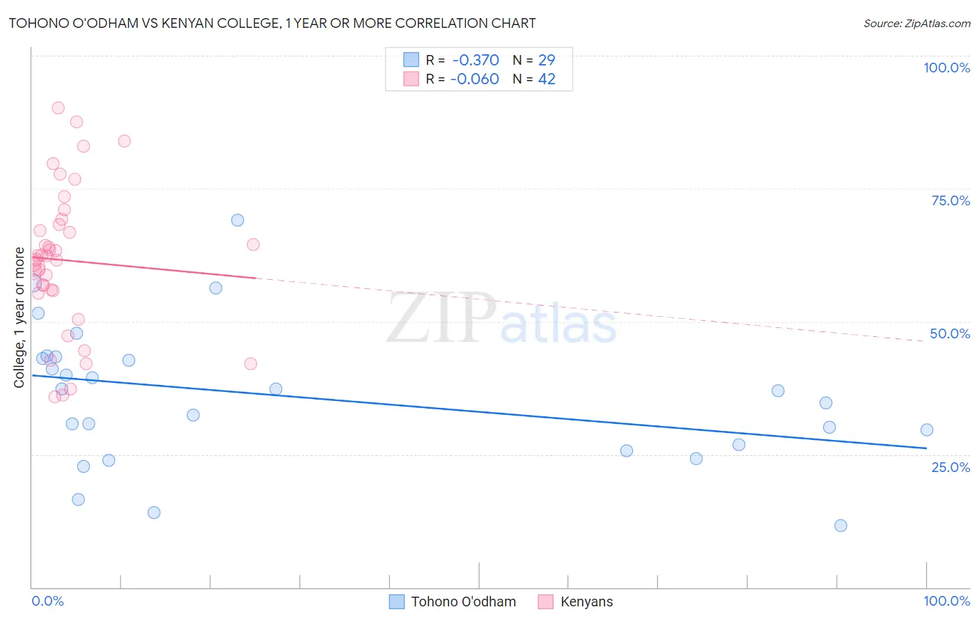 Tohono O'odham vs Kenyan College, 1 year or more Correlation Chart