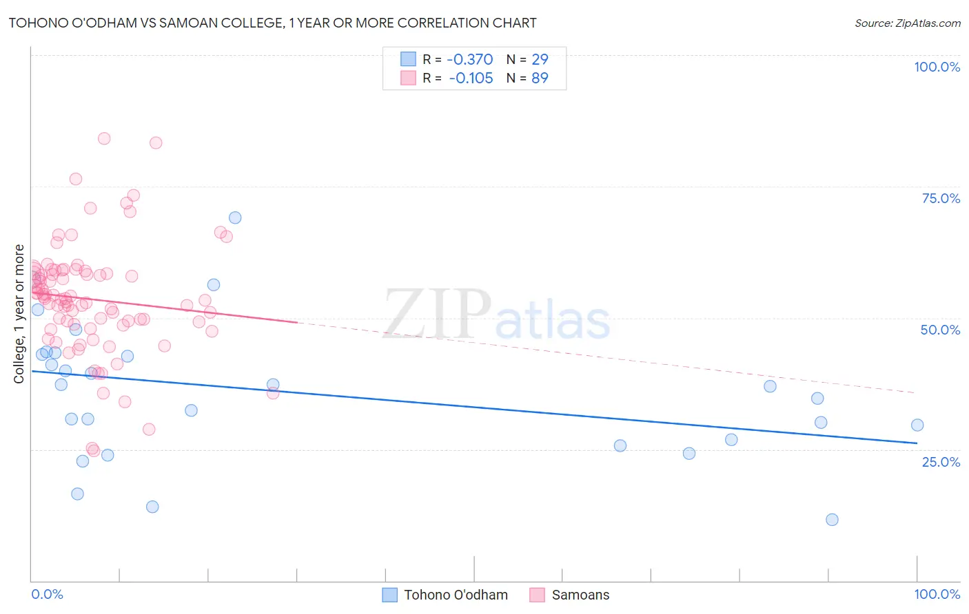 Tohono O'odham vs Samoan College, 1 year or more Correlation Chart