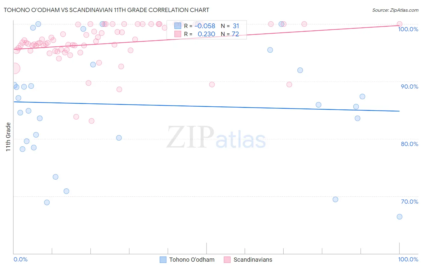Tohono O'odham vs Scandinavian 11th Grade Correlation Chart
