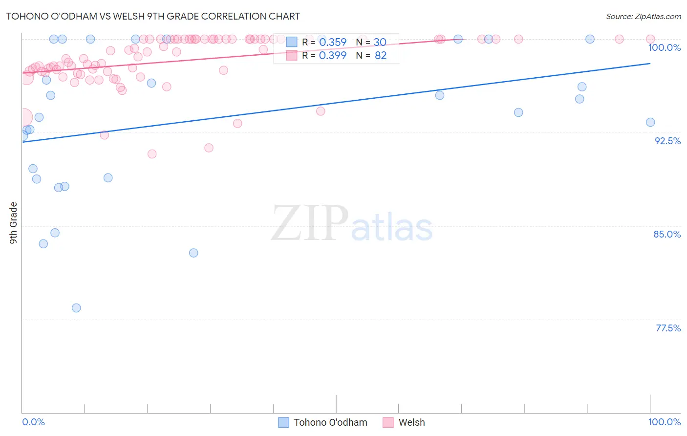 Tohono O'odham vs Welsh 9th Grade Correlation Chart