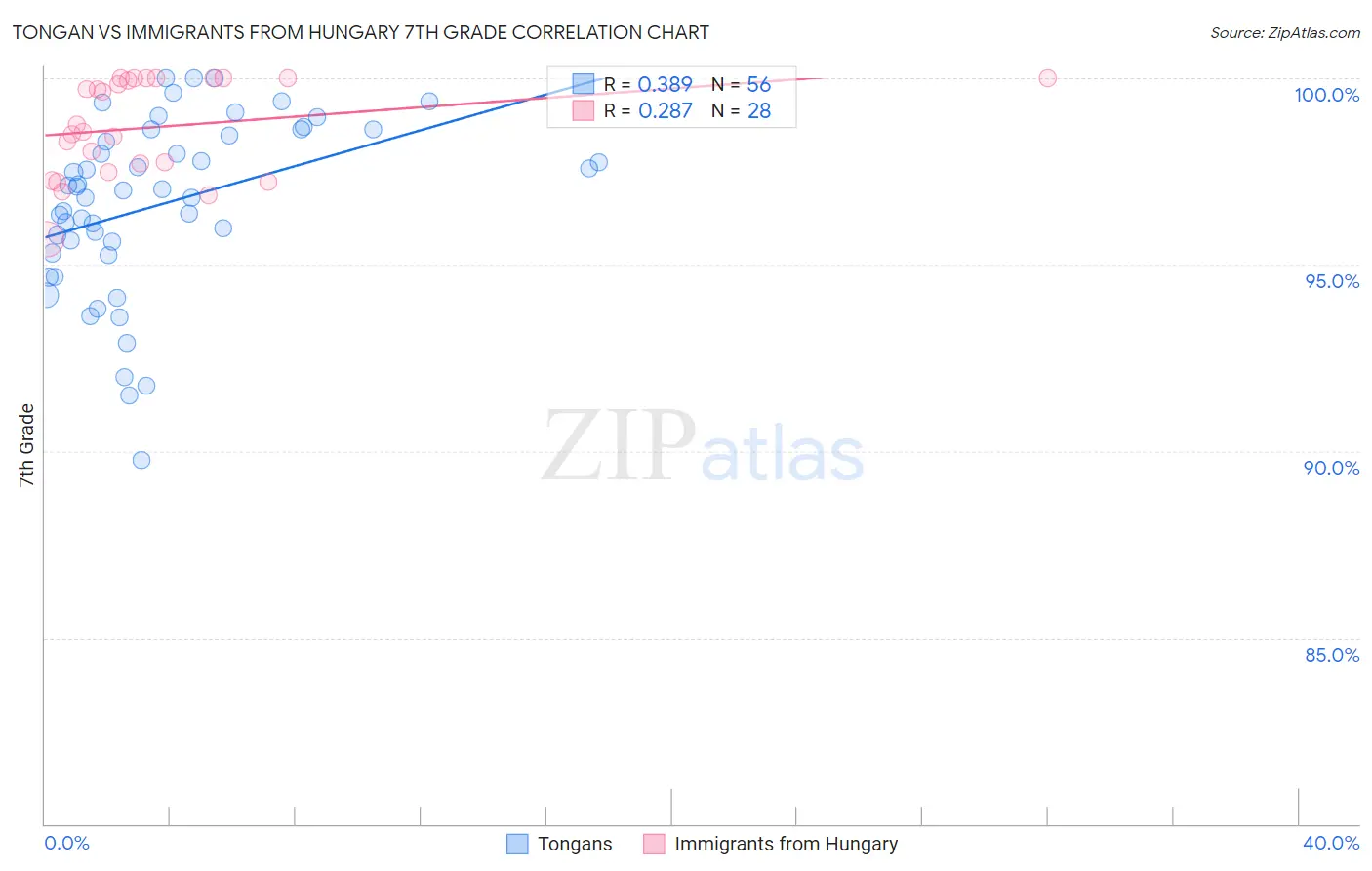 Tongan vs Immigrants from Hungary 7th Grade Correlation Chart