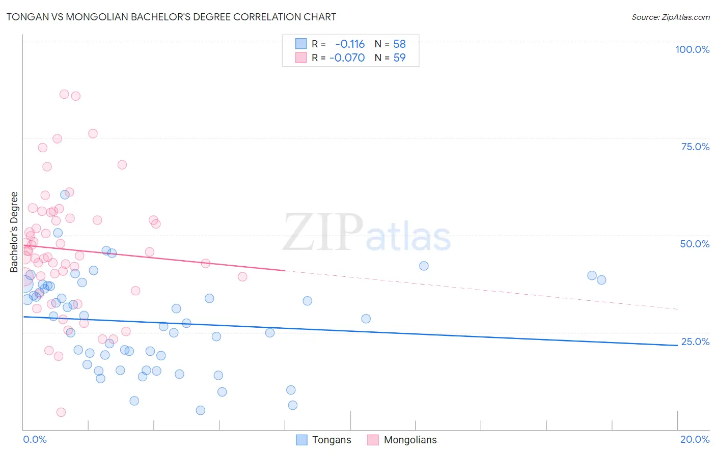 Tongan vs Mongolian Bachelor's Degree Correlation Chart