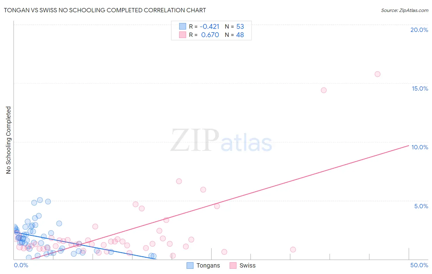 Tongan vs Swiss No Schooling Completed Correlation Chart