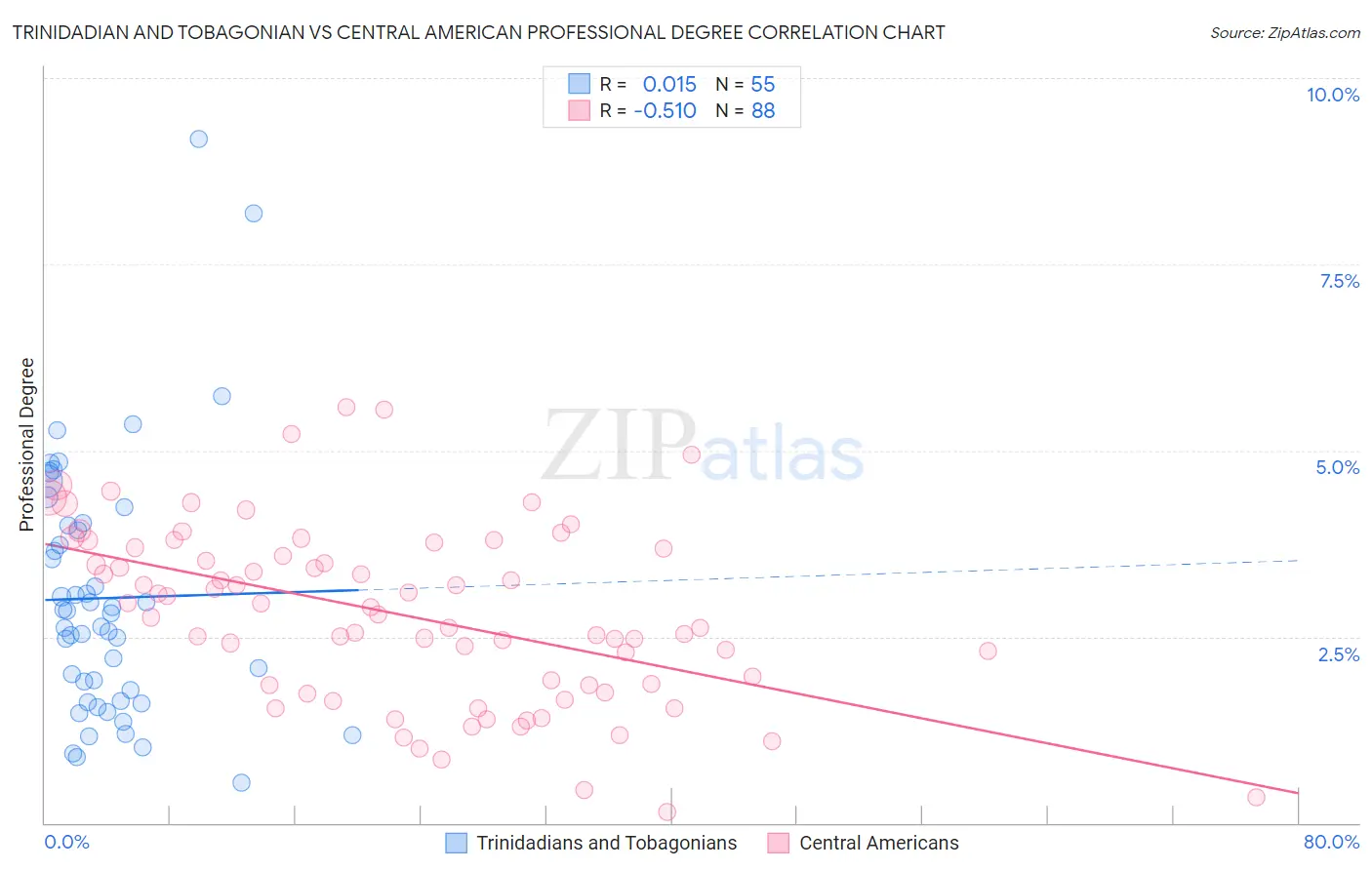 Trinidadian and Tobagonian vs Central American Professional Degree Correlation Chart