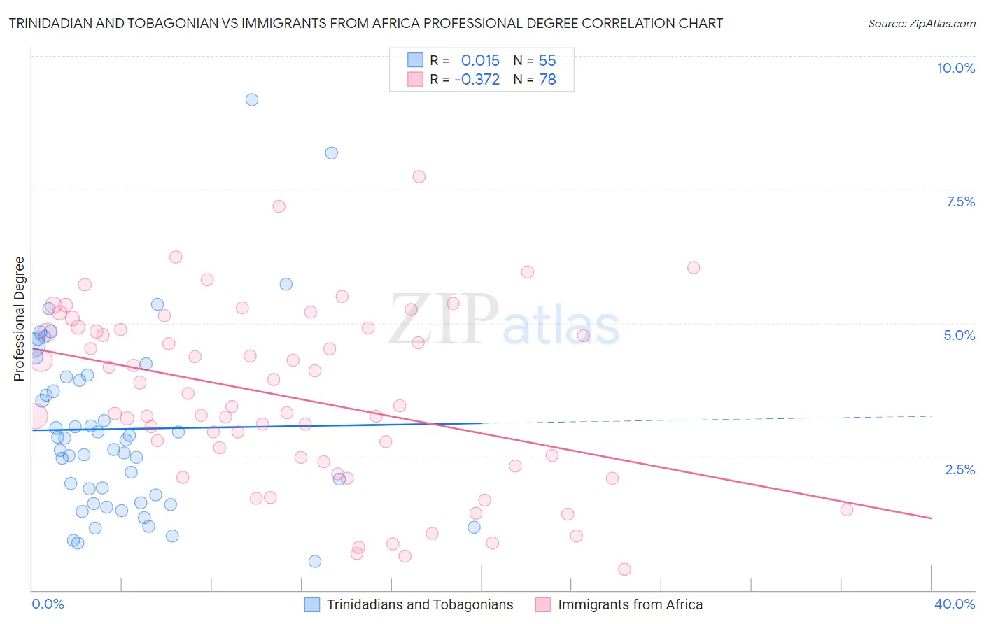 Trinidadian and Tobagonian vs Immigrants from Africa Professional Degree Correlation Chart