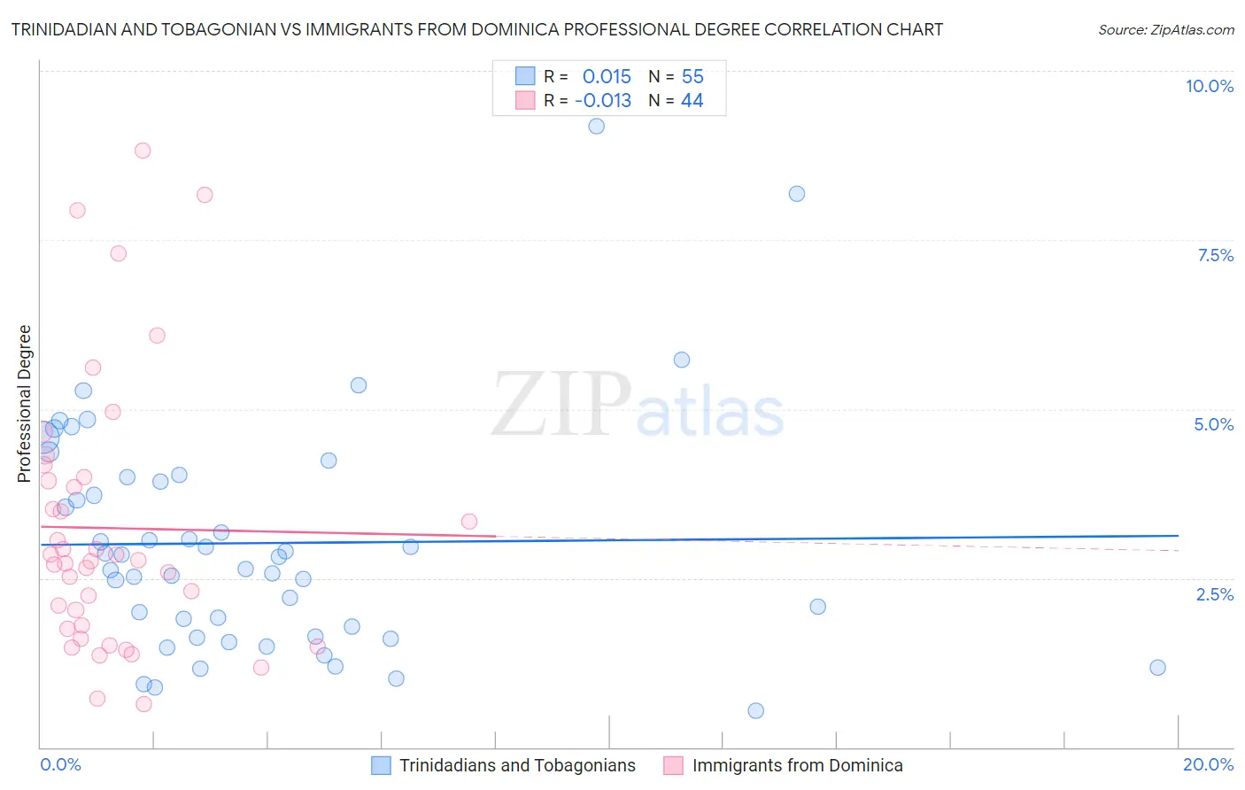 Trinidadian and Tobagonian vs Immigrants from Dominica Professional Degree Correlation Chart