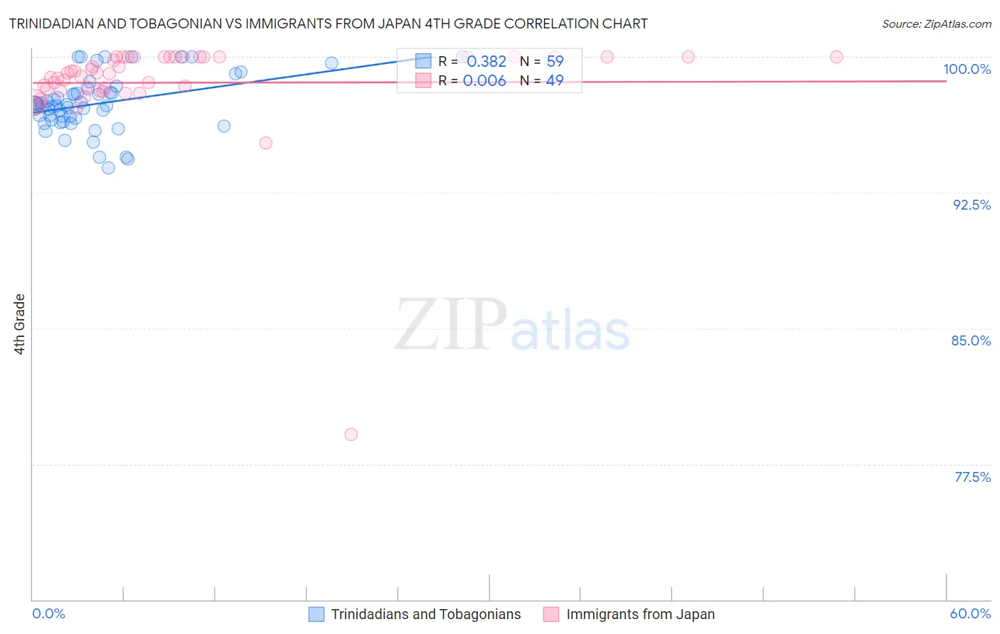 Trinidadian and Tobagonian vs Immigrants from Japan 4th Grade Correlation Chart