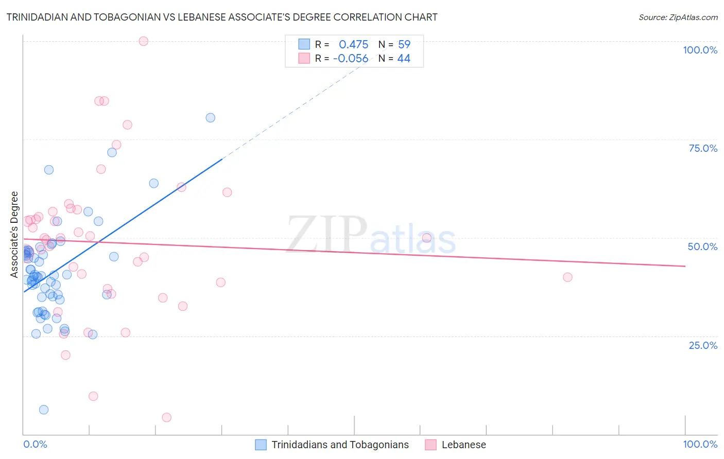 Trinidadian and Tobagonian vs Lebanese Associate's Degree Correlation Chart