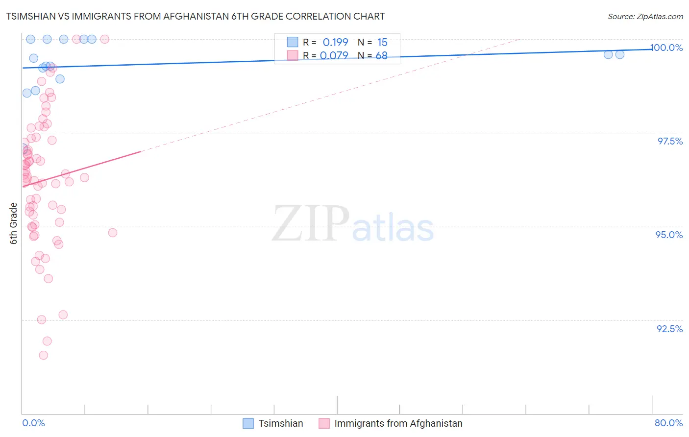 Tsimshian vs Immigrants from Afghanistan 6th Grade Correlation Chart
