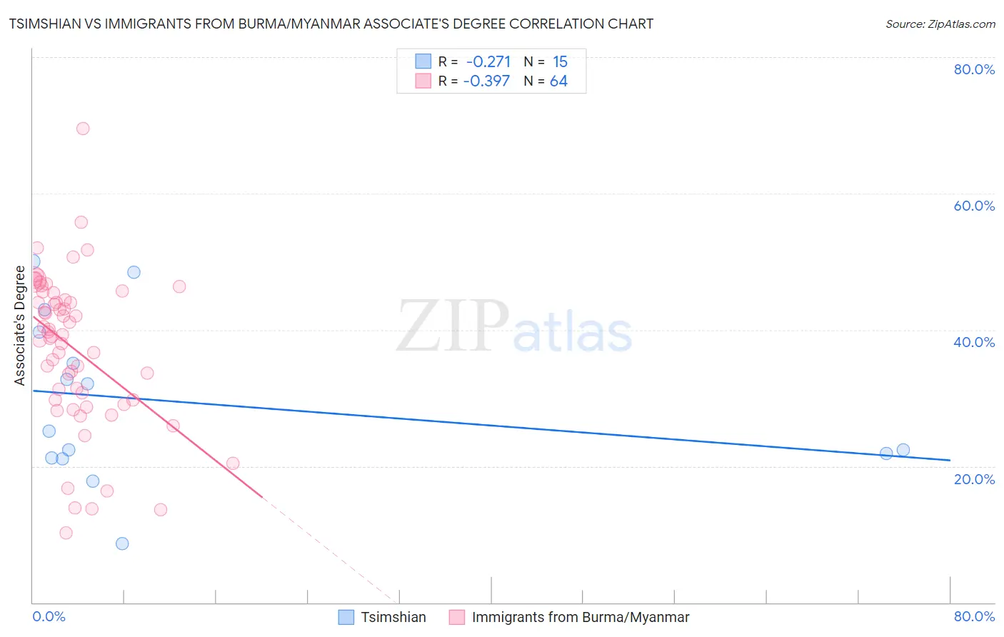 Tsimshian vs Immigrants from Burma/Myanmar Associate's Degree Correlation Chart