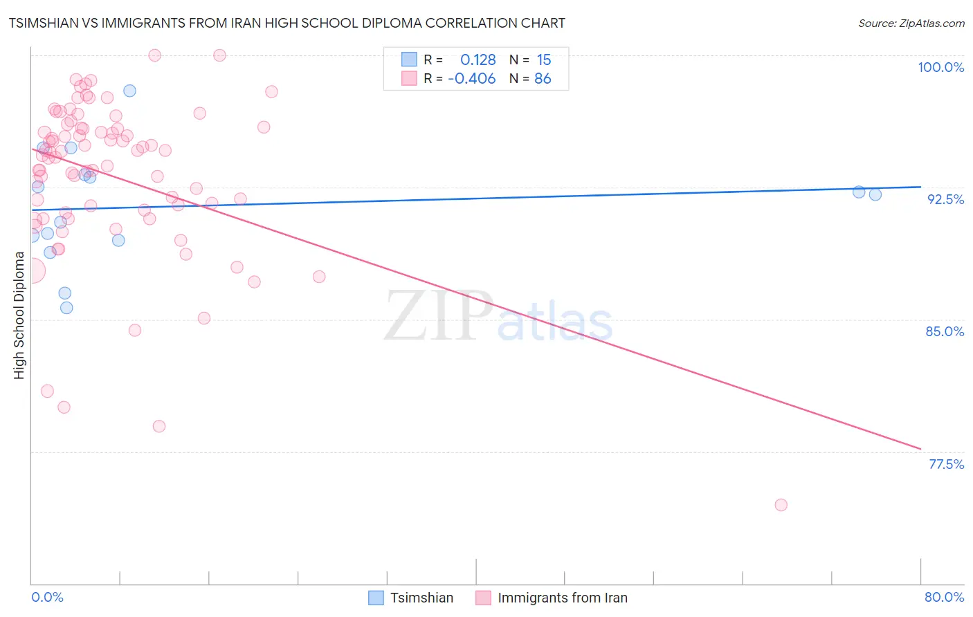 Tsimshian vs Immigrants from Iran High School Diploma Correlation Chart