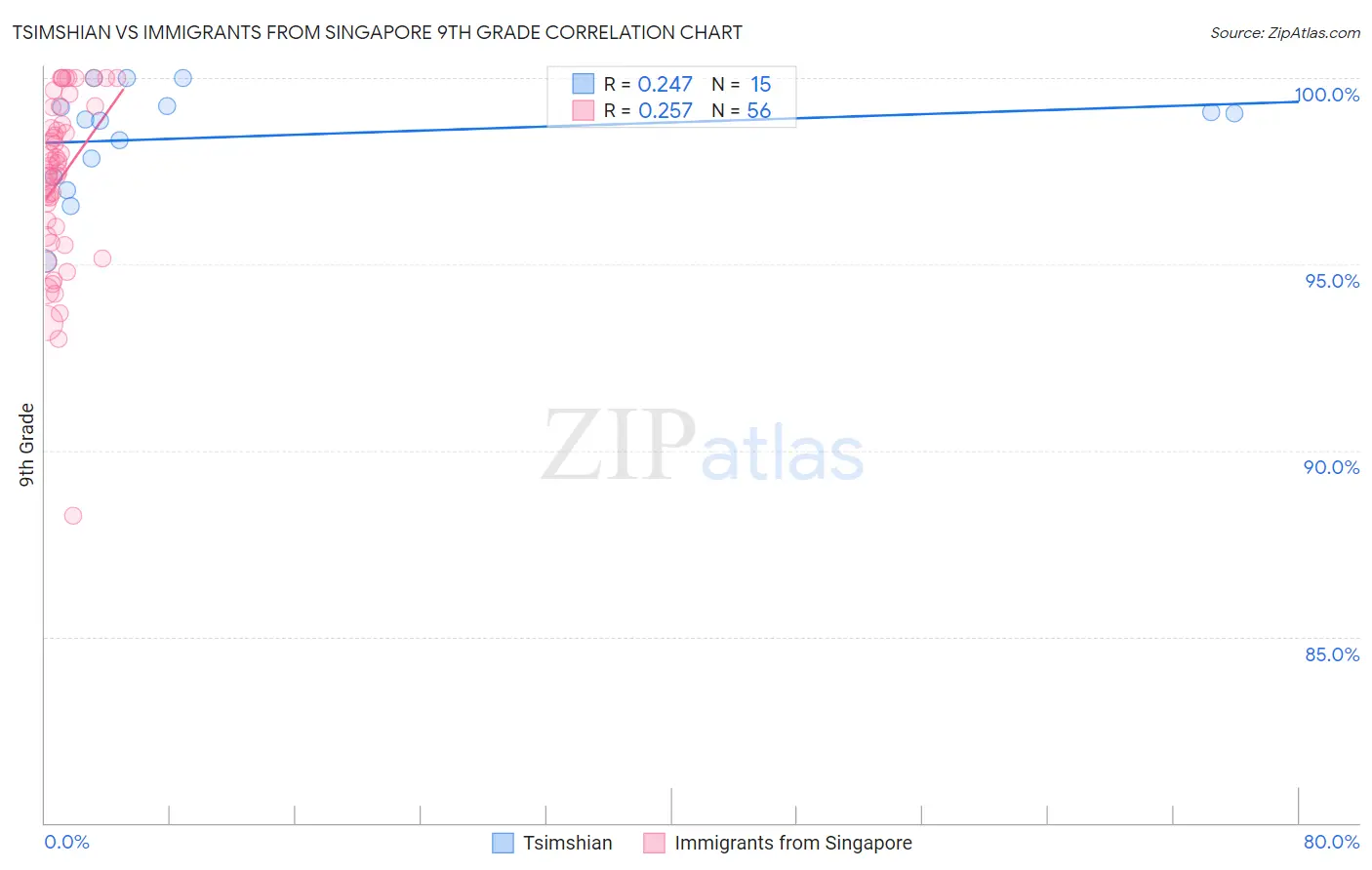 Tsimshian vs Immigrants from Singapore 9th Grade Correlation Chart