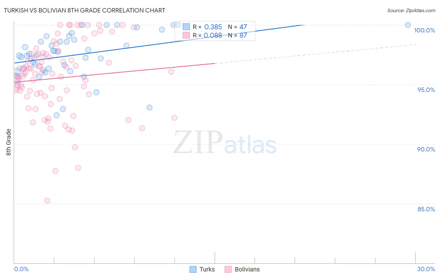 Turkish vs Bolivian 8th Grade Correlation Chart