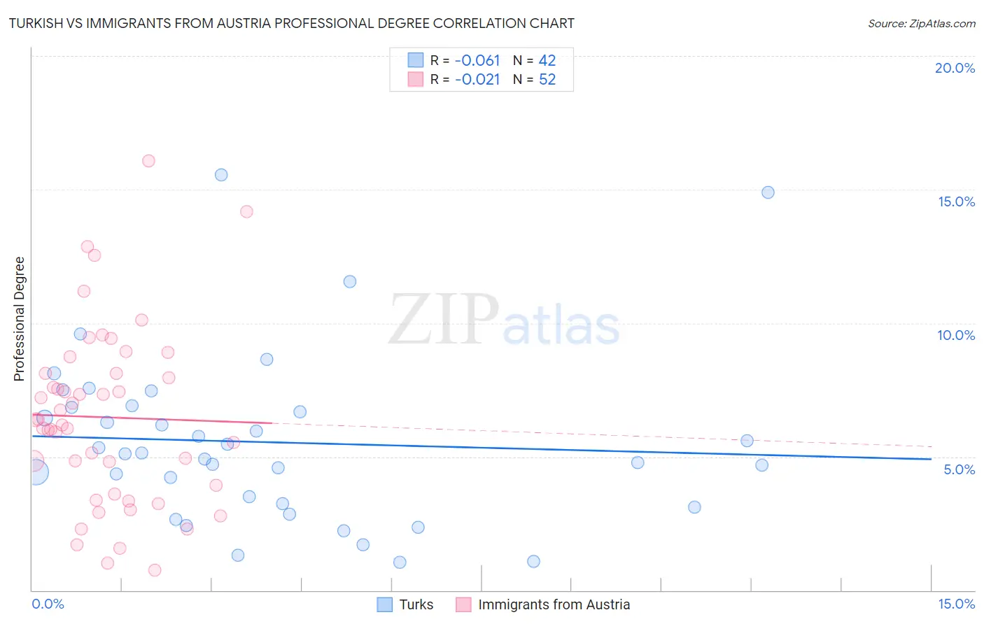 Turkish vs Immigrants from Austria Professional Degree Correlation Chart