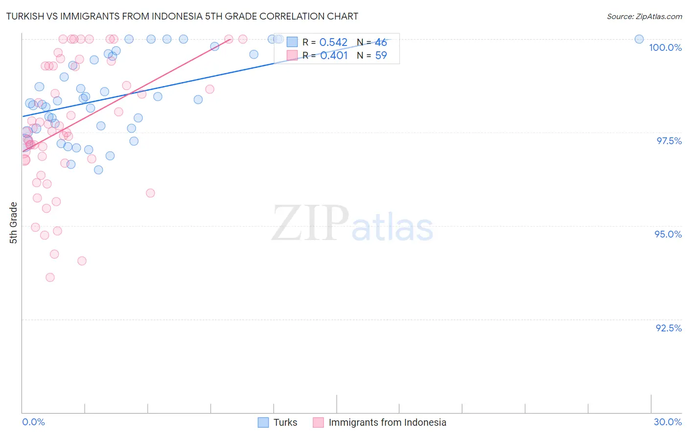 Turkish vs Immigrants from Indonesia 5th Grade Correlation Chart