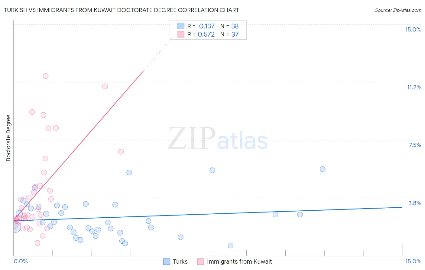 Turkish vs Immigrants from Kuwait Doctorate Degree Correlation Chart