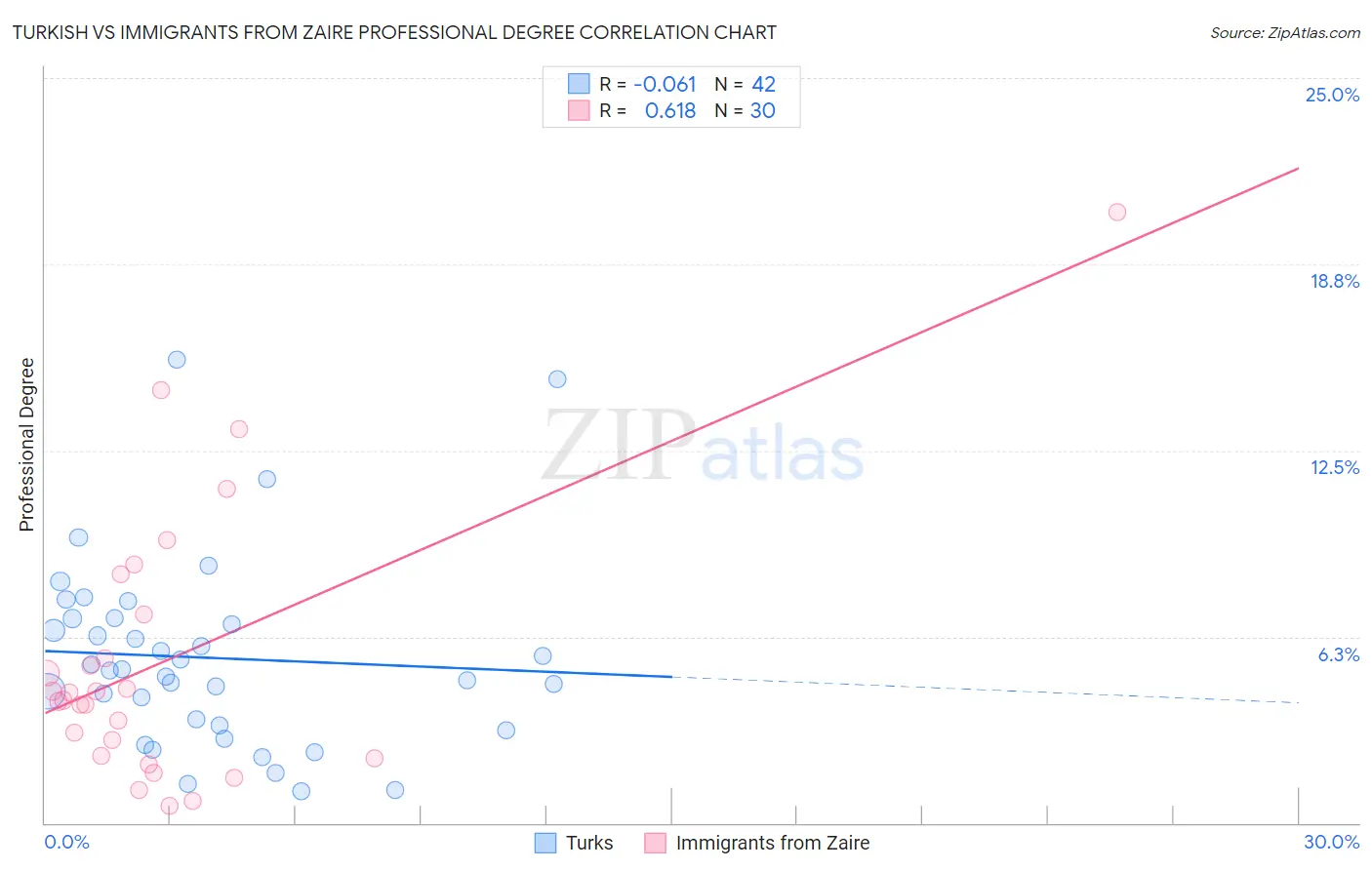 Turkish vs Immigrants from Zaire Professional Degree Correlation Chart