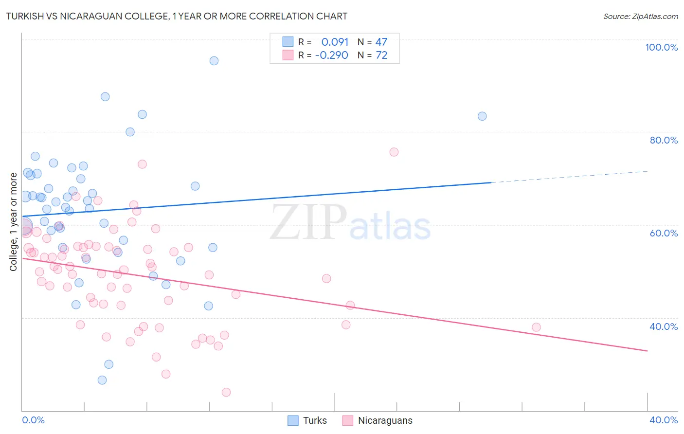 Turkish vs Nicaraguan College, 1 year or more Correlation Chart