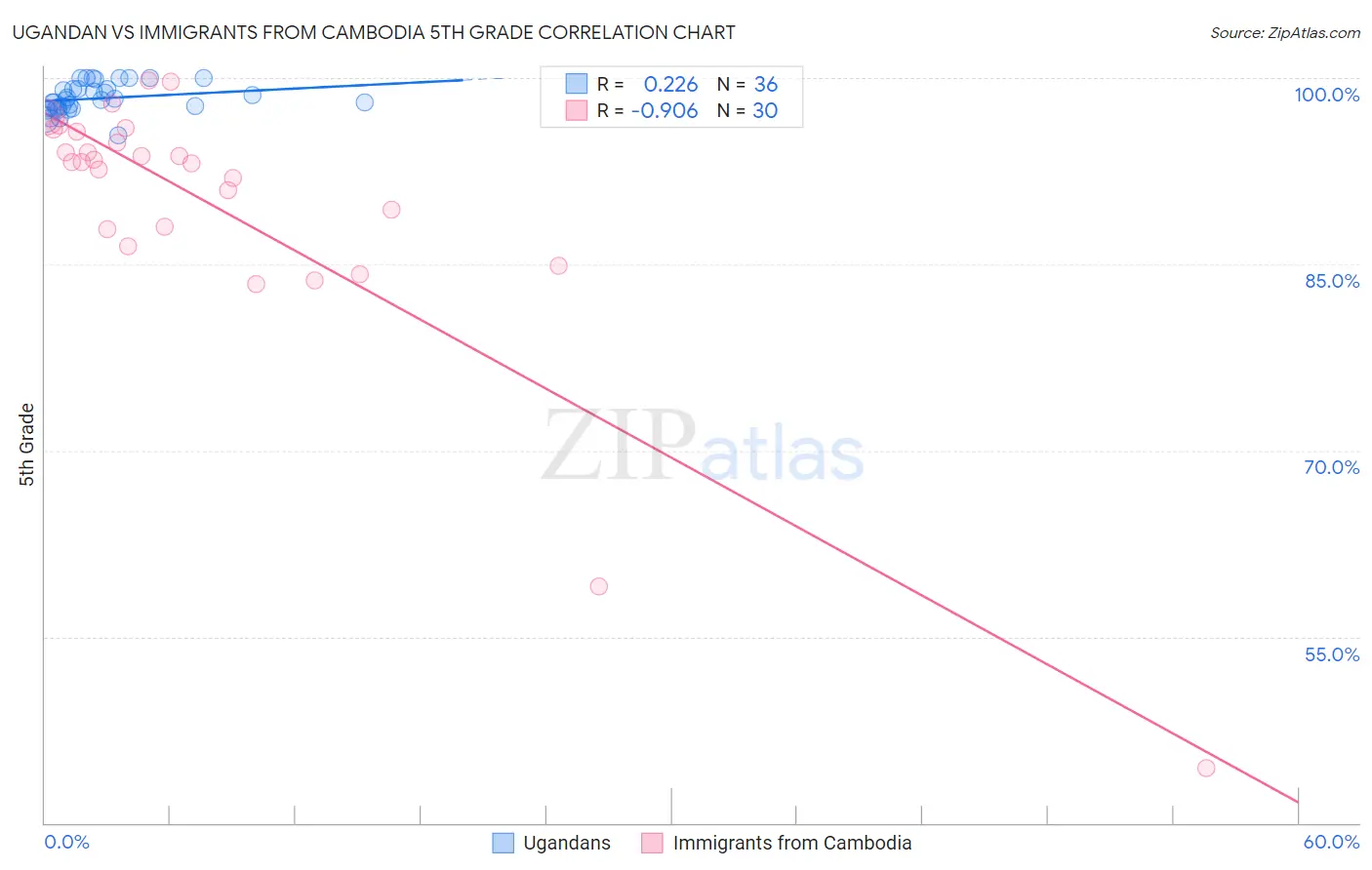 Ugandan vs Immigrants from Cambodia 5th Grade Correlation Chart