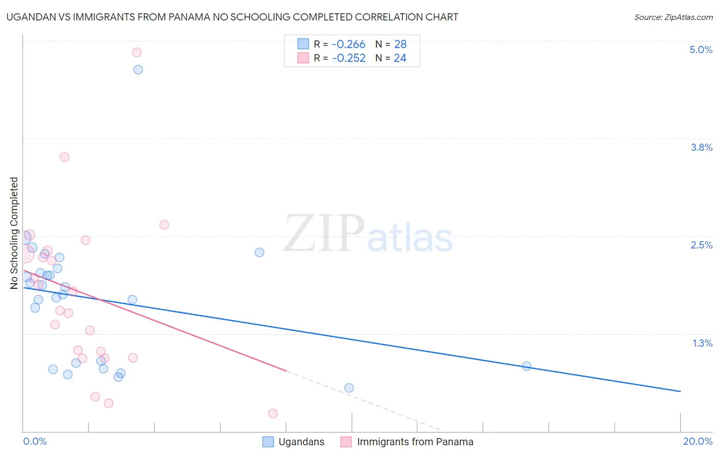 Ugandan vs Immigrants from Panama No Schooling Completed Correlation Chart
