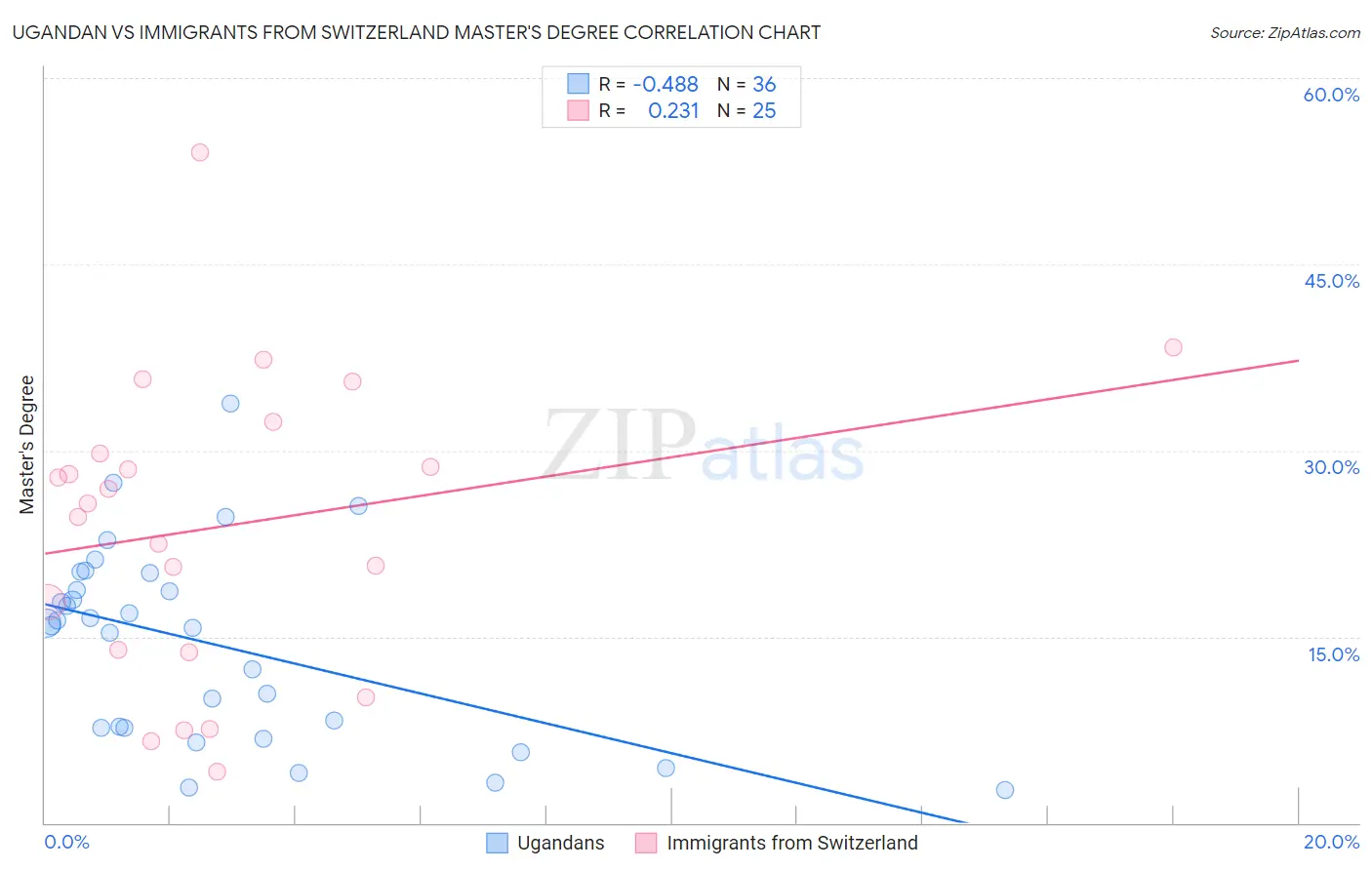 Ugandan vs Immigrants from Switzerland Master's Degree Correlation Chart