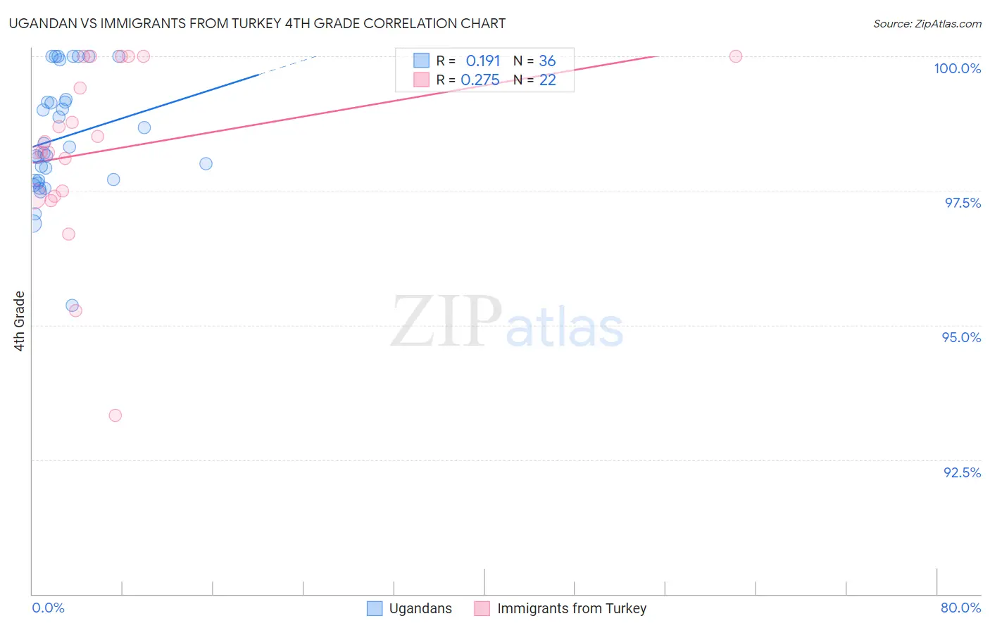 Ugandan vs Immigrants from Turkey 4th Grade Correlation Chart