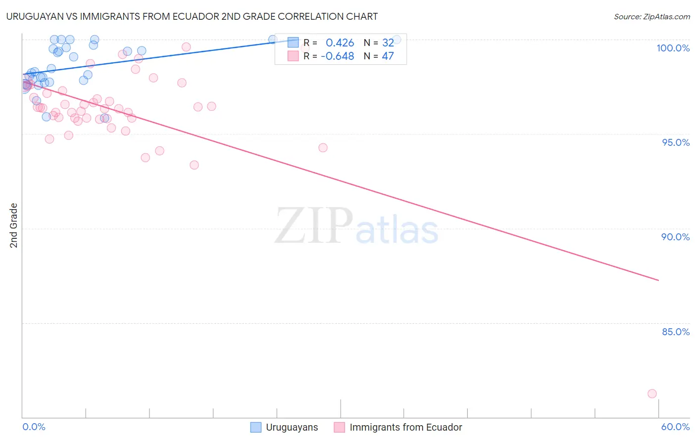 Uruguayan vs Immigrants from Ecuador 2nd Grade Correlation Chart