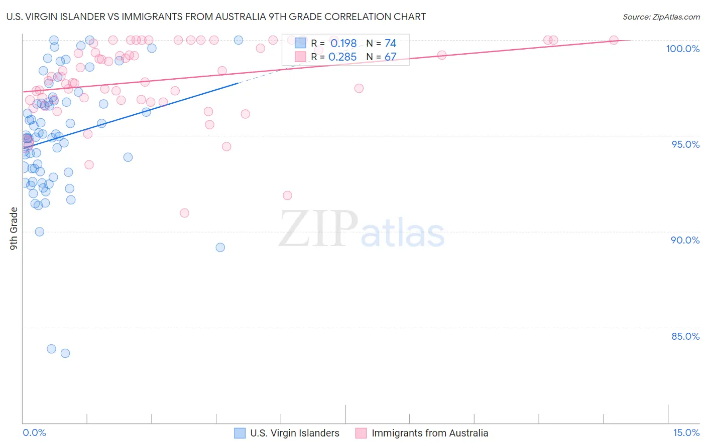 U.S. Virgin Islander vs Immigrants from Australia 9th Grade Correlation Chart
