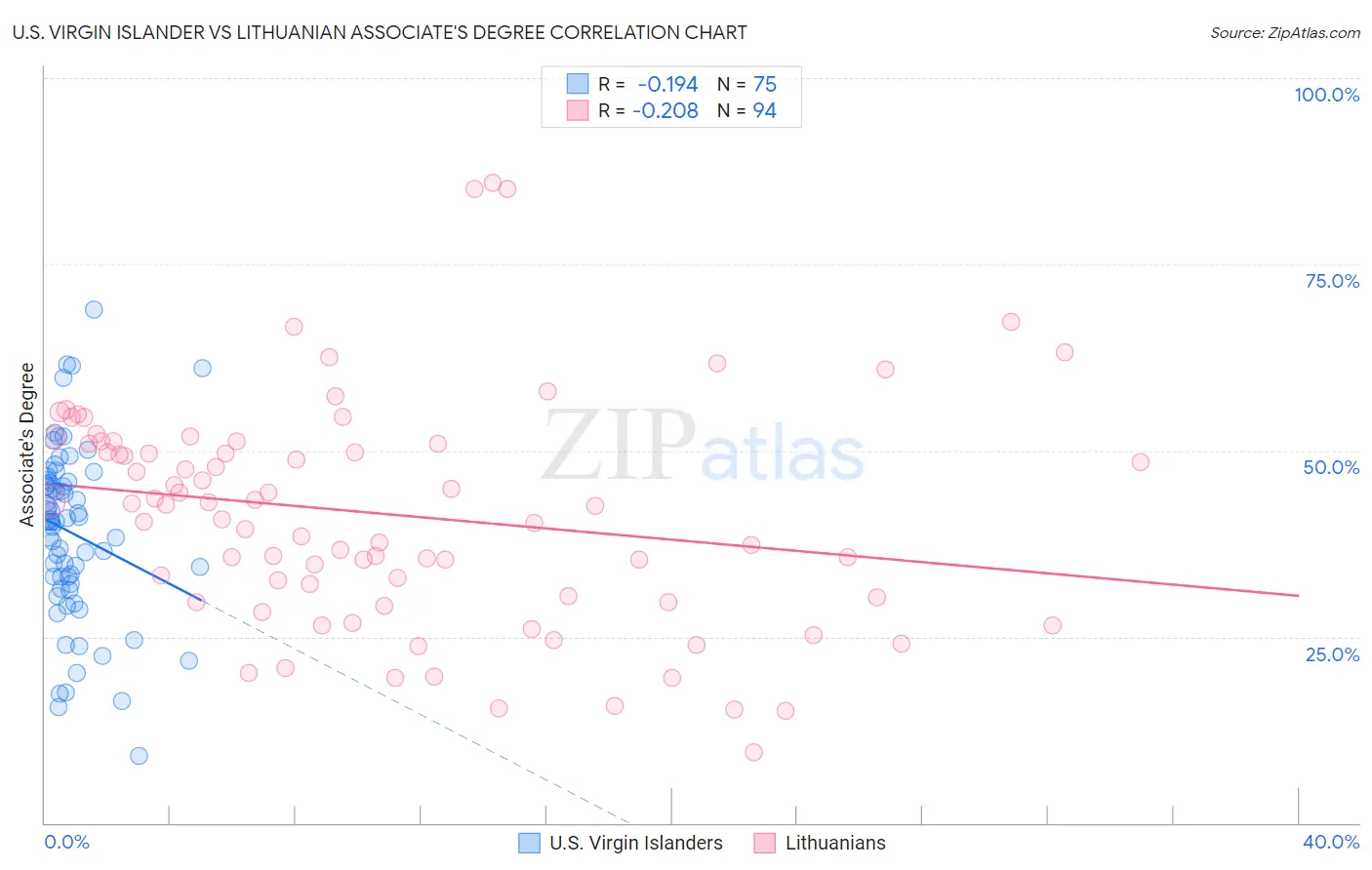 U.S. Virgin Islander vs Lithuanian Associate's Degree Correlation Chart