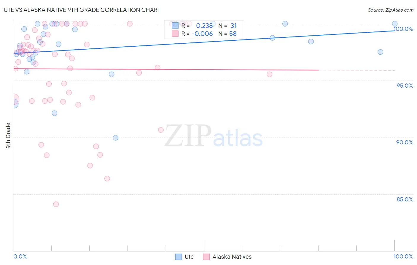 Ute vs Alaska Native 9th Grade Correlation Chart