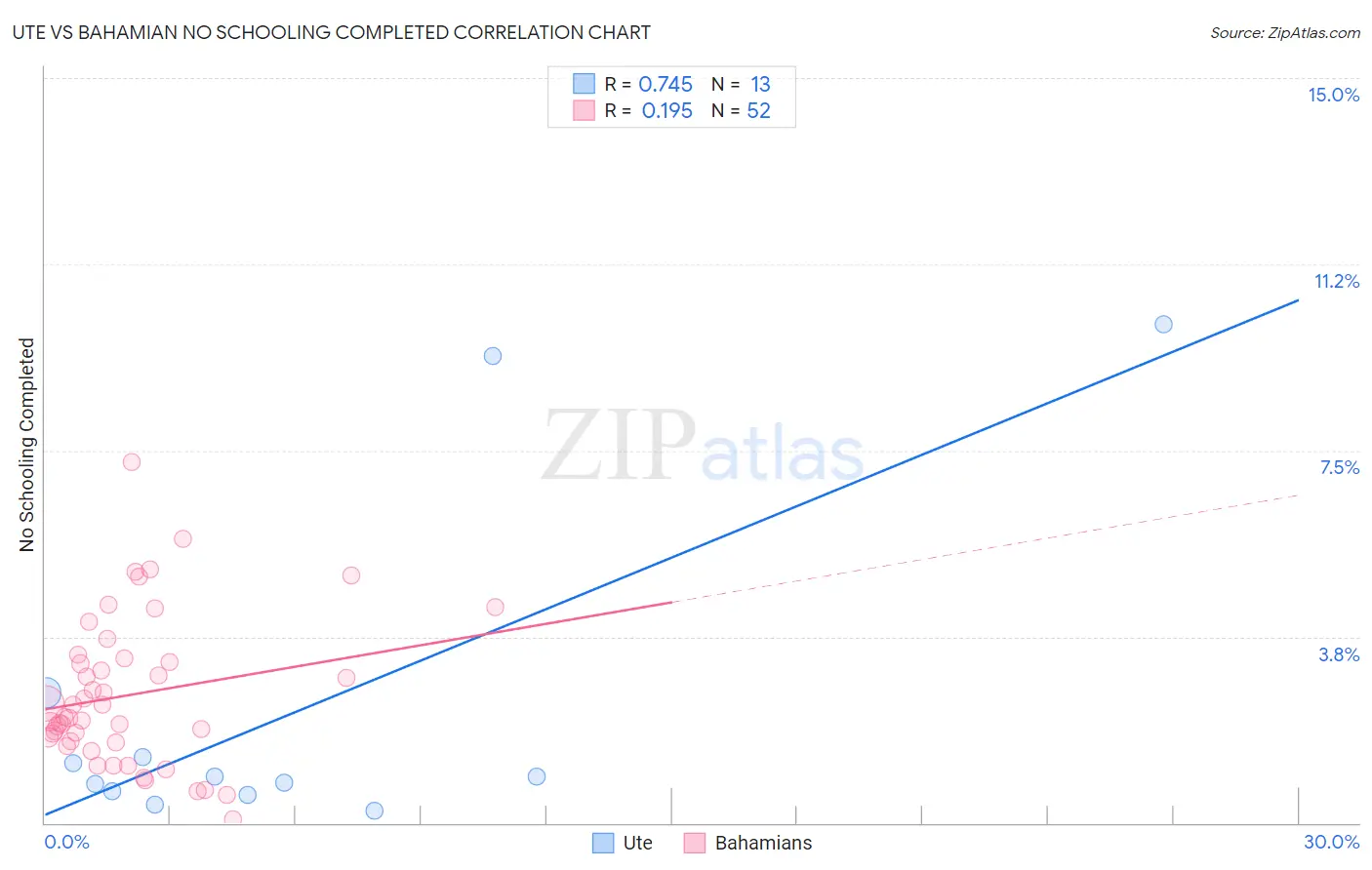 Ute vs Bahamian No Schooling Completed Correlation Chart