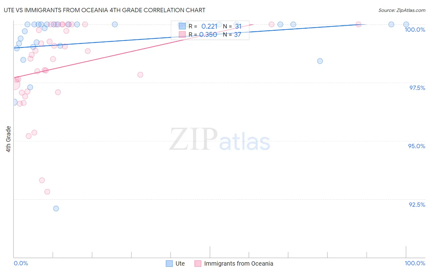 Ute vs Immigrants from Oceania 4th Grade Correlation Chart