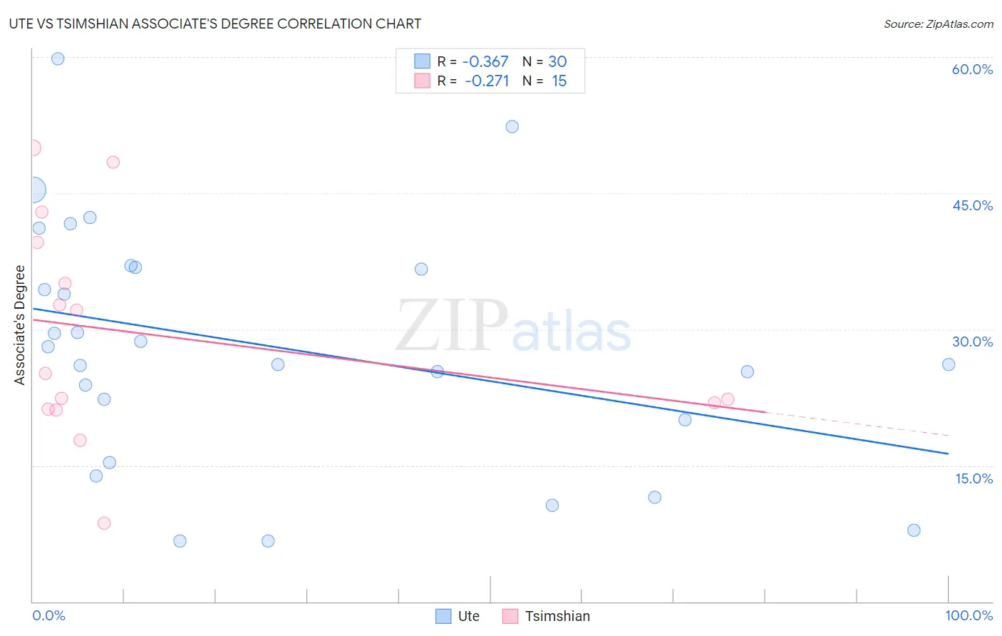 Ute vs Tsimshian Associate's Degree Correlation Chart